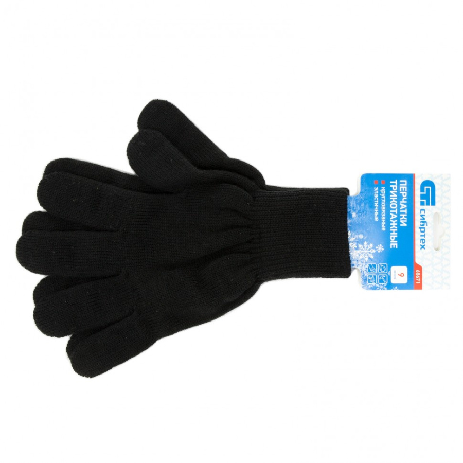 Перчатки трикотажные, акрил, черный, двойная манжета Россия Сибртех 68671