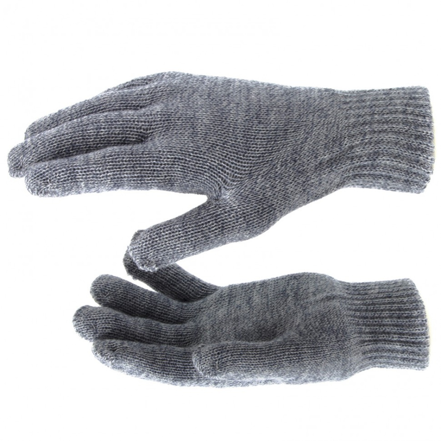 Перчатки трикотажные, акрил, двойные, серое мулине, двойная манжета Россия Сибртех 68684