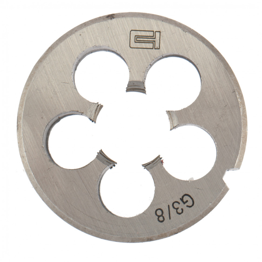 Плашка изготовлена из стали 9ХС и предназначена для нарезания наружной трубной резьбы соответствующего типоразмера.