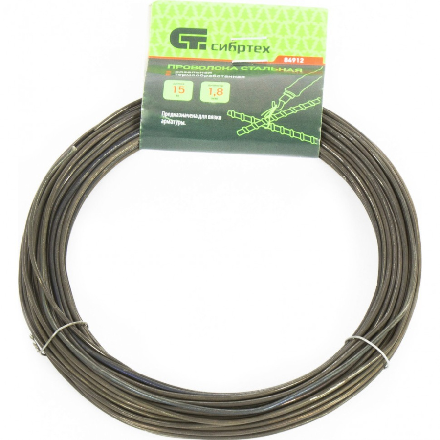 Проволока стальная 15 м, вязальная, термообработанная 1.8 мм Сибртех 84912