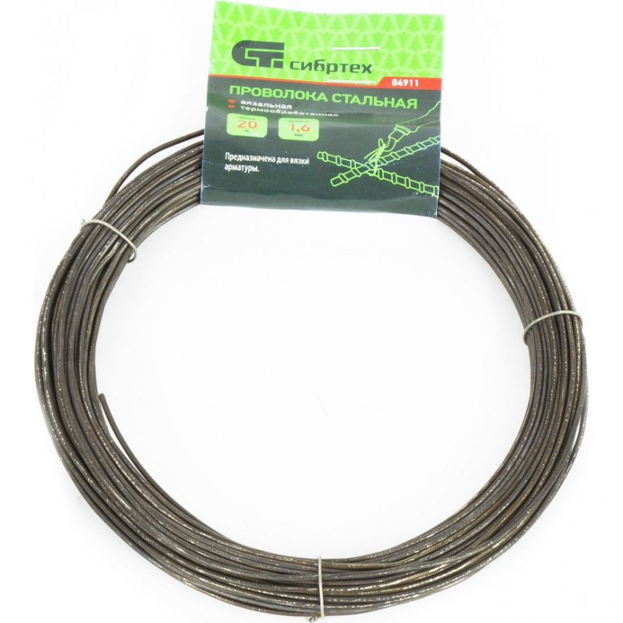 Проволока стальная 20 м, вязальная, термообработанная 1.6 мм Сибртех 84911