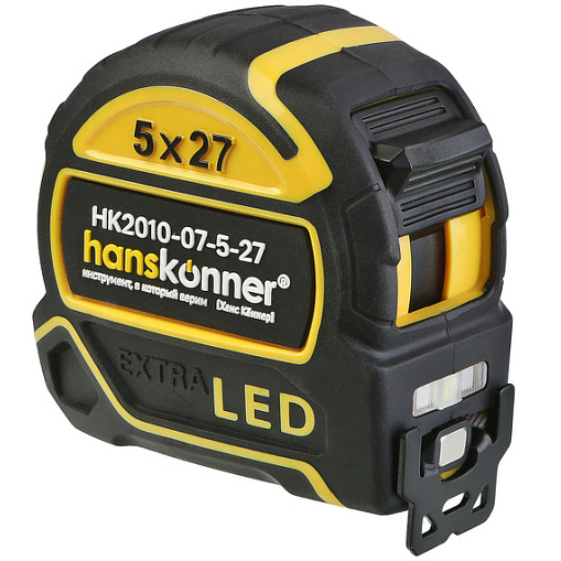 Рулетка 5x27мм, двухстор., нейлон, супермощный магнит, LED фонарь, hanskonner HK2010-07-5-27