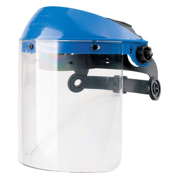 Защитный лицевой щиток с экраном из поликарбоната, размером 300 x 200 мм, толщиной 2 мм, используется для предохранения лица работника от летящих частиц при проведении строительных и монтажных работ.