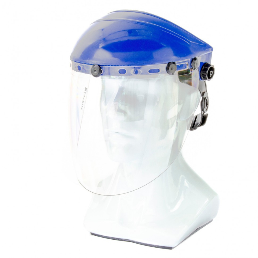 Щиток из прозрачного поликарбоната для защиты лица и глаз от механических повреждений во время работы.