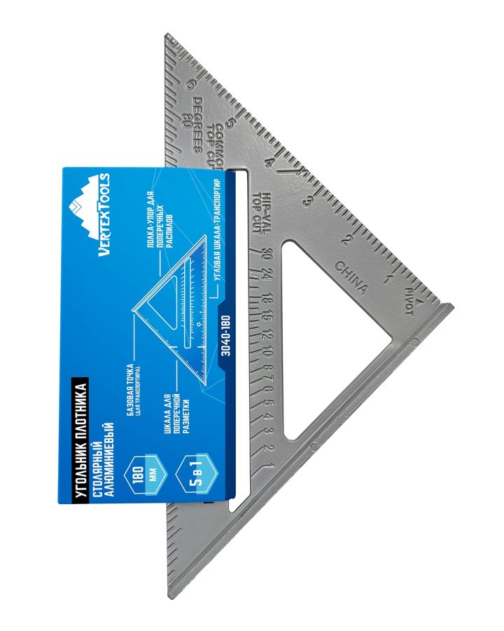 Столярный угольник плотника алюминиевый 180мм Vertextools