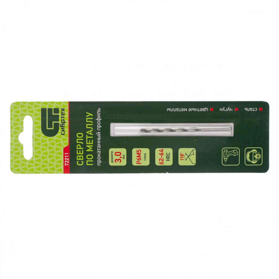 Сверло по металлу, 3 мм, Р6М5 Сибртех 72211