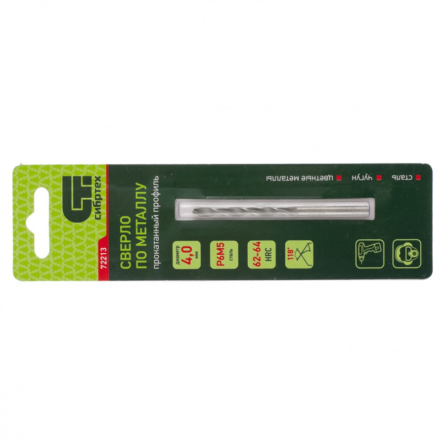Сверло по металлу, 4 мм, Р6М5 Сибртех 72213