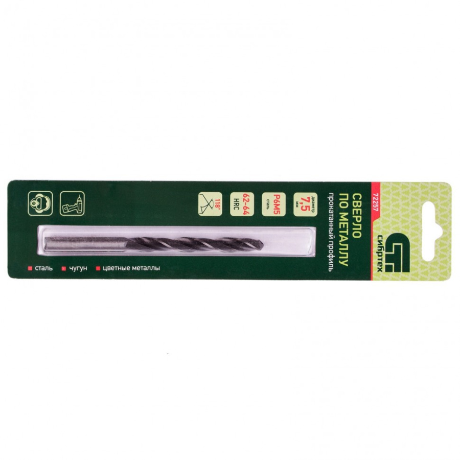 Сверло по металлу, 7.5 мм, Р6М5 Сибртех 72257