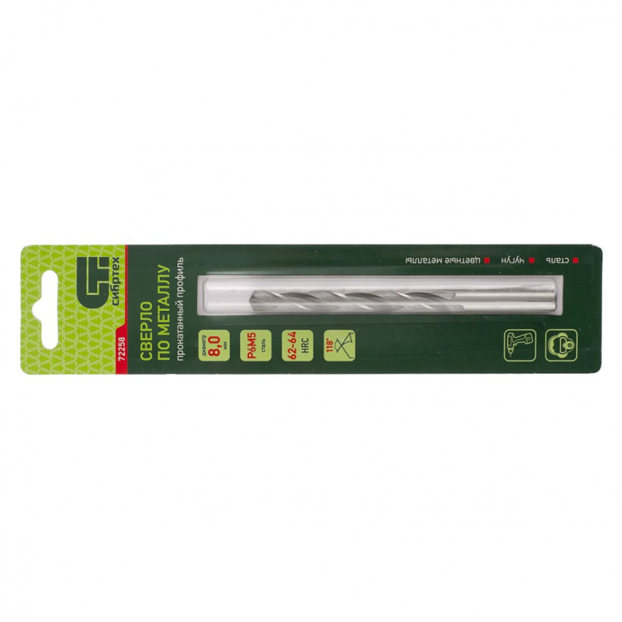Сверло по металлу, 8 мм, Р6М5 Сибртех 72258