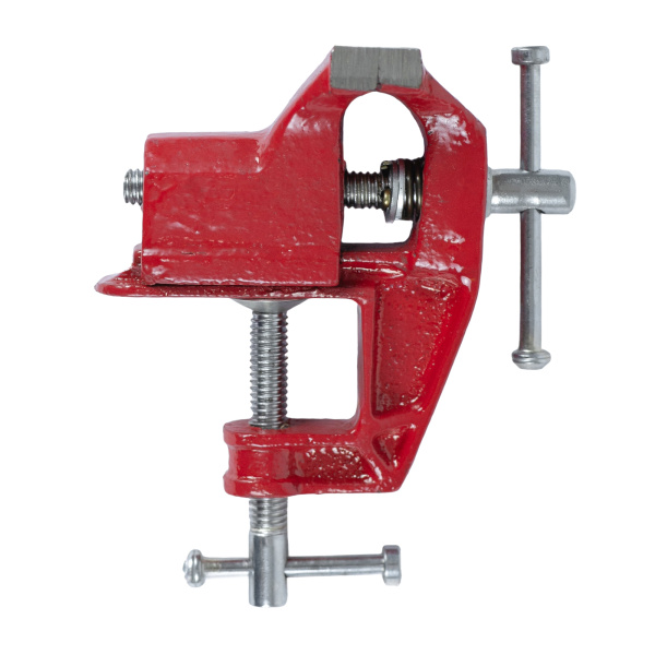 Тиски настольные, предназначены для фиксации мелких заготовок для дальнейшей слесарной обработки, изготовлены из чугуна, рабочие губки из стали твёрдость 45 HRс.