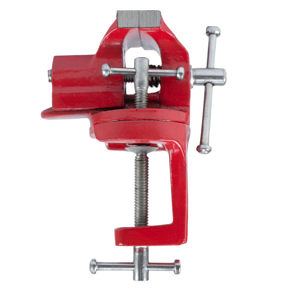 Тиски настольные, предназначены для фиксации мелких заготовок для дальнейшей слесарной обработки, изготовлены из чугуна, рабочие губки из стали твёрдость 45 HRс. Оснащены поворотным механизмом.