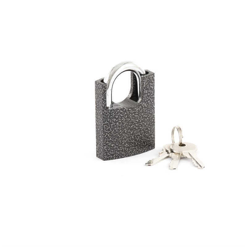 Замок навесной предназначен для запирания хозяйственных помещений, гаражей, складов, подвалов и т.д.Корпус : Углеродистая стальПокрытие корпуса: Молотковая эмальМатериал исполнения дужки: стальная с хромированным покрытиемКо-во ключей: 3 Материал исполнения секретного механизма: Латунь в пластмассовом корпусе.