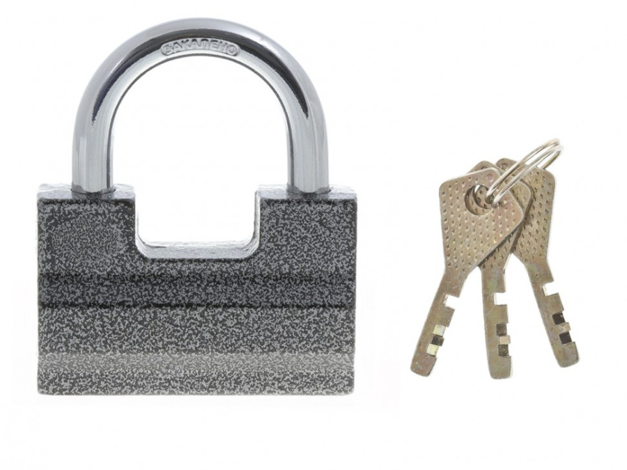 Замок повышенной защищенности со стальным корпусом и стальной закаленной дужкой. Предназначен для защиты ответственных помещений: гаражей, складов, магазинов. Имеет широкий проем дужки, что позволяет использовать их и для дверей с большим расстоянием между проушинами. Механизм секрета расположен сбоку. В комплекте 3 ключа.